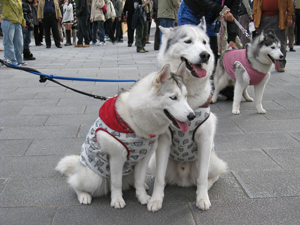 そうそう、宇治橋の手前で、何故かハスキー犬のオフ会が繰り広げられておりまして(笑)