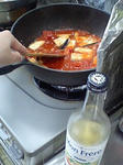 オリーブオイルにニンニクと唐辛子を入れ炒めたら、白ワインを加え、