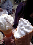 画像右が唐辛子です。まったく伝わりませんが、赤いつぶつぶがソフトクリームの中に見え隠れしているところが心憎い演出です(演出違うと思う)。