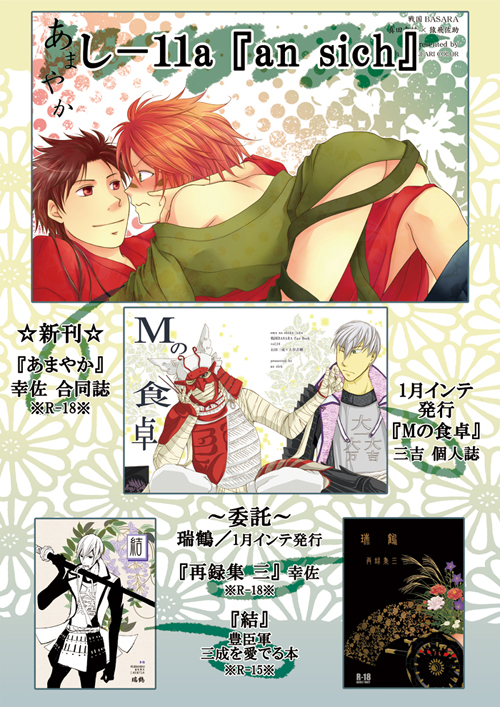 次回はHARUコミです。ここ暫く連続で戦国系イベントがあるので、当日幸佐サークルは少ないかもですが、出ると決めた以上、何かしら作って行きたいです。